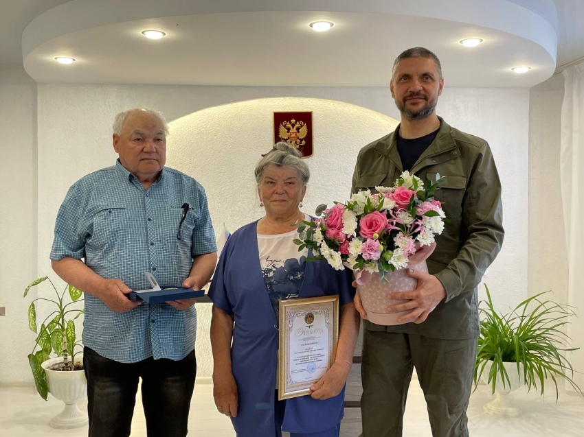 Глава Забайкалья Александр Осипов во время командировки в Карымский район 15 июля вручил парам Вадима и Татьяны Курбатовых и Александра и Тамары Пальшиных медали «За любовь и верность».