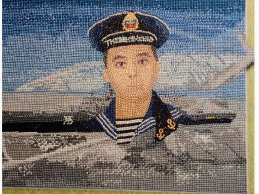 Жительница посёлка Нагорный Нерчинского района Забайкалья Нина Бунова выложила из алмазной мозаики портрет матроса Алдара Цыденжапова и передала его родителям Героя России.