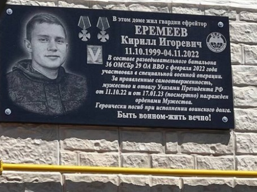 В селе Войково Ленинского района Республики Крым 4 мая открыли мемориальную доску в память об уроженце Забайкалья Кирилле Еремееве, который 4 ноября прошлого года погиб в ходе специальной военной операции.