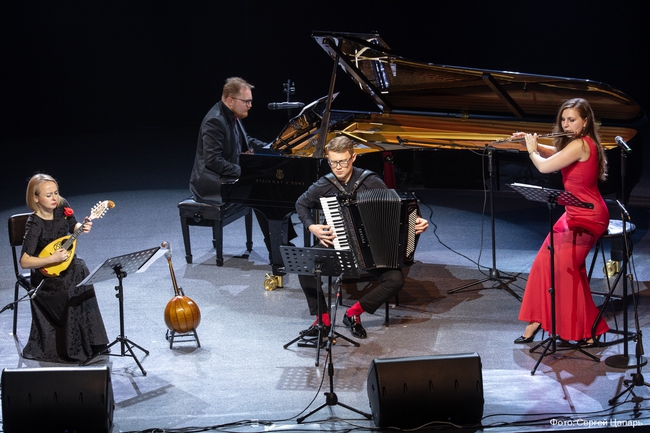 Премьеру представили талантливые и виртуозные артисты: известная российская флейтистка, лауреат Международных конкурсов, преподаватель МГИМ им. А.Г. Шнитке Ирина Стачинская, лауреат всероссийских и международных конкурсов и фестивалей Александра Скрозникова (домра), лауреат международных конкурсов Александр Веретенников (аккордеон) и преподаватель МГК им. П.И. Чайковского, а также лауреат Международных конкурсов Михаил Турпанов (фортепиано).