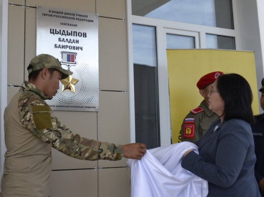 Доску, увековечивающую подвиг Героя России Балдана Цыдыпова, открыли в селе Урда-Ага Агинского района 1 сентября. Памятная доска находится на фасаде средней общеобразовательной школы имени Г.Ж. Цыбикова. Об этом сообщается на сайте правительства Забайкальского края.