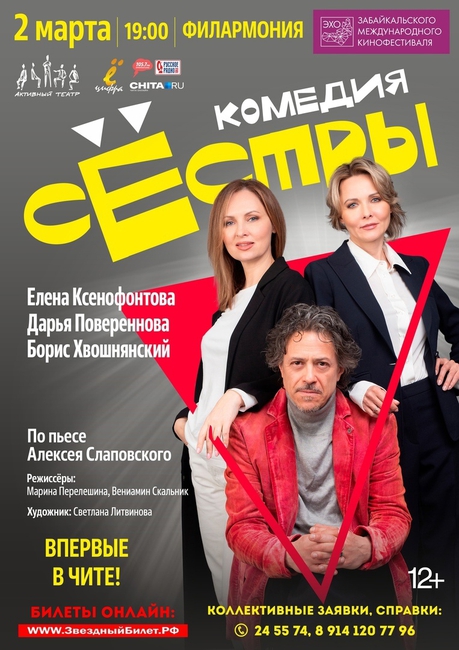 «Сестры» — прелестная, остроумная, меткая комедия с летящими диалогами. Она про то, что существует всегда! Про семейные отношения, любовный треугольник и несбывшиеся мечты. В постановке примут участие всеми любимые звезды театра и кино, Заслуженные артистки России Елена Ксенофонтова и Дарья Повереннова, а также неподражаемый Борис Хвошнянский!