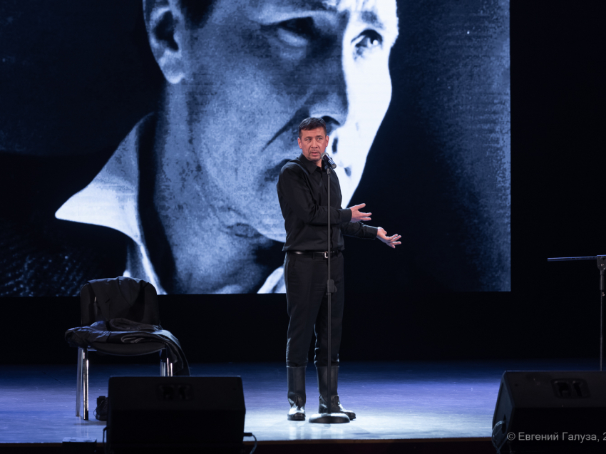 Фото Евгения ГалузыПервые моноспектакли прошли в Доме офицеров Забайкальского края и на сцене Забайкальского государственного университета (ЗабГУ). В залах краевой столицы артист собрал около полутора тысяч читинских школьников и студентов. Дальше он отправился по малым городам и поселкам Zабайкалья, где на сценах он показал свой моноспектакль.