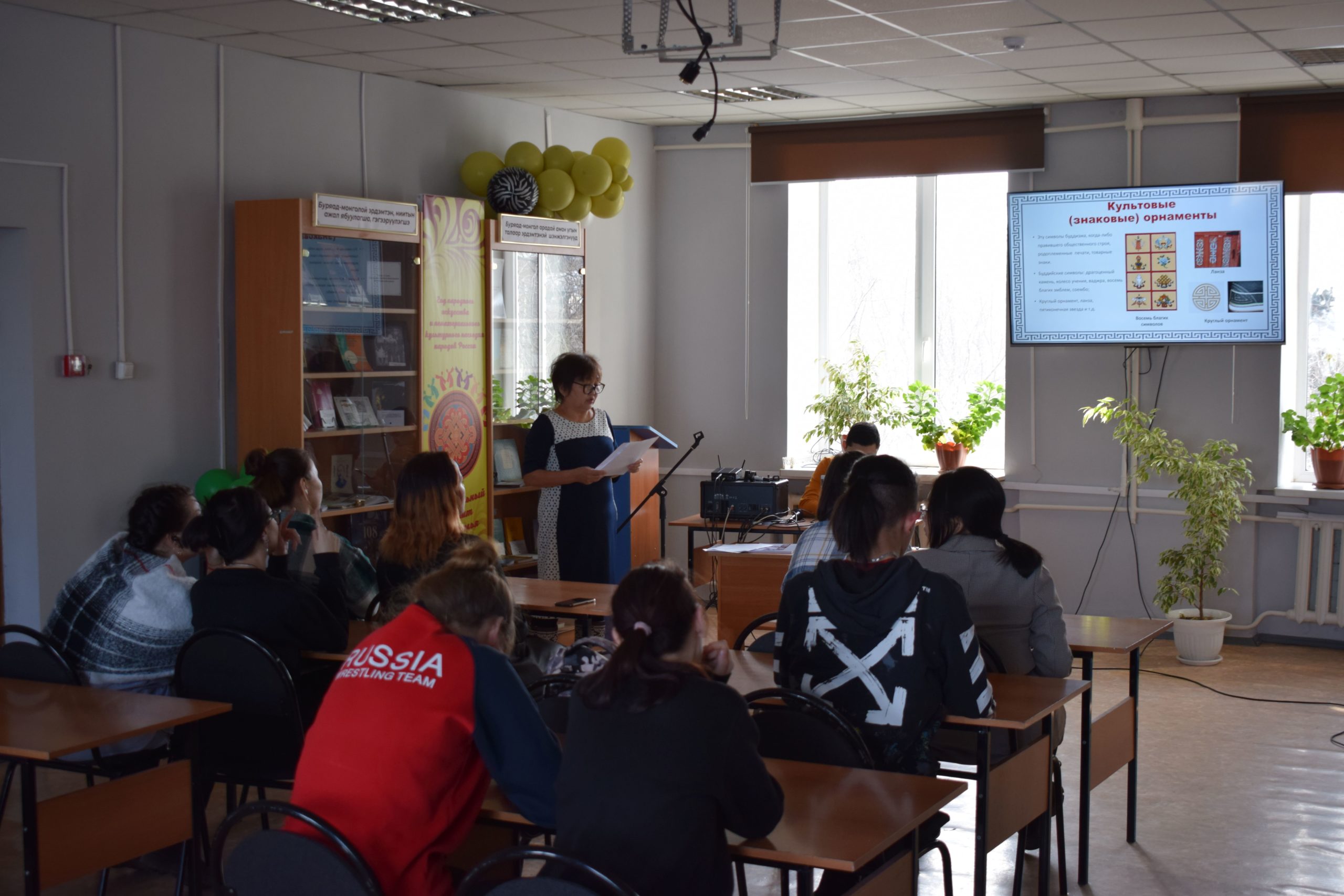 Ответ на этот вопрос подготовили сотрудники отдела информационного и сервисного обеспечения Агинской краевой библиотеки им.Ц.Жамцарано. Посетителей мастер-класса – студентов Агинского педагогического колледжа, они познакомили с бурятскими орнаментами, их видами и символикой. Во второй, практической части мастер-класса ребята своими руками изготовили настольный календарь-пирамидку с орнаментами.