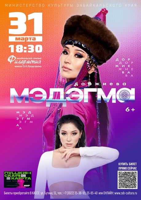 31 марта в 18:30 на сцене большого концертного зала филармонии состоится Юбилейная концертная программа звезды бурятской эстрады заслуженной артистки Бурятии - Мэдэгмы Доржиевой.