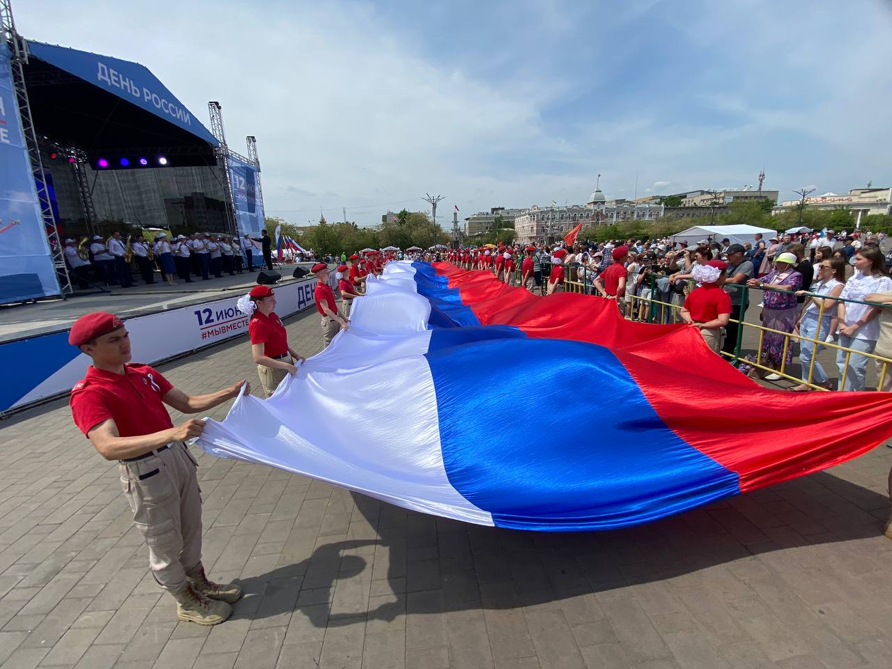 Большой праздничный концерт (0+), посвящённый Дню России, начался на площади Ленина. До 18:00 здесь выступят различные творческие коллективы города. Об этом 12 июня сообщается в Telegram-канале администрации города.