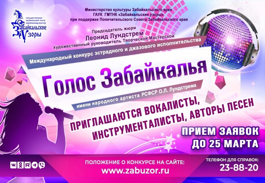 Продолжается приём заявок на участие в VI Международном конкурсе эстрадного и джазового исполнительства «Голос Забайкалья»