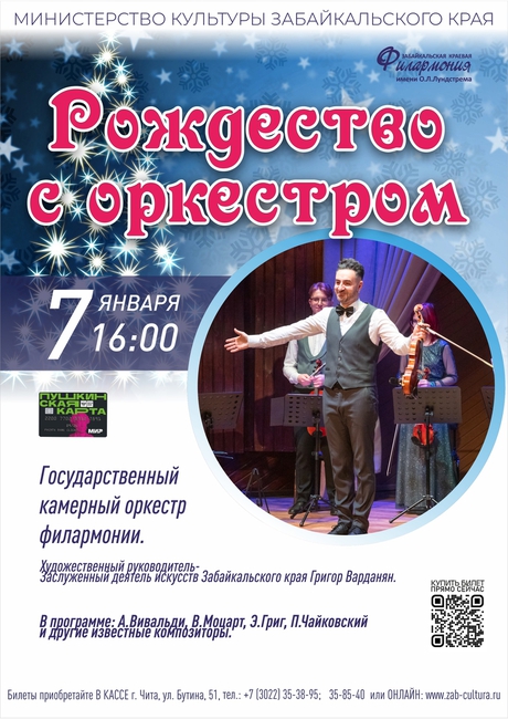 7 января в 16:00 артисты Государственного камерного оркестра представят концертную программу «Рождество с оркестром», в которую вошли особенные произведения венецианского композитора и скрипача-виртуоза Антонио Вивальди, австрийского композитора Вольфганга Амадея Моцарта, норвежского композитора Эдварда Грига, великого русского композитора Петра Чайковского и других композиторов, которые внесли свой вклад в музыкальную шкатулку истории