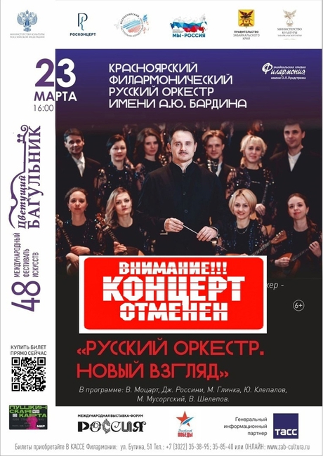 Уважаемые зрители в связи с трагическими событиями в «Крокус сити холл» концерт Красноярского филармонического русского оркестра имени А.Ю.
