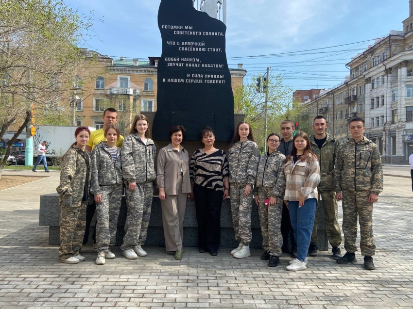 Читинские студенты высадили деревья в сквере у мемориала Героям СВО