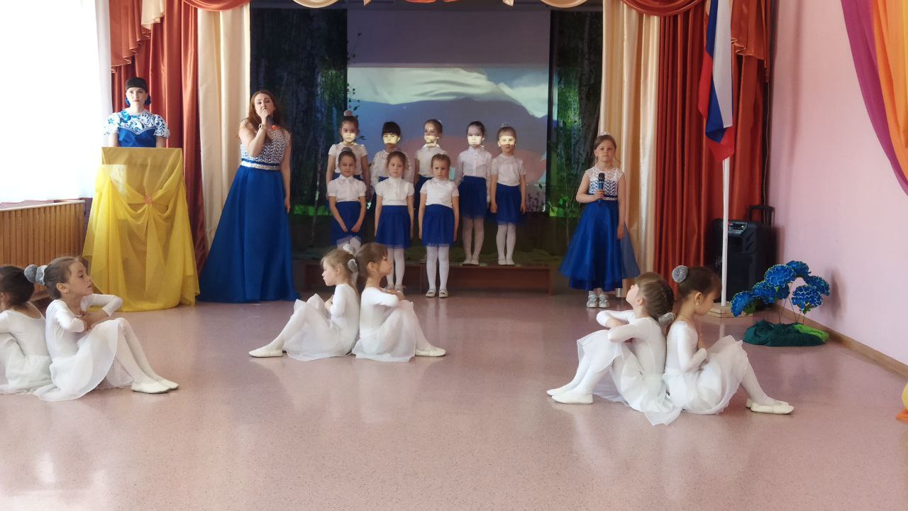 Были представлены танцы: 2-я младшая группа «Сережка», подготовительная группа танец «Василек», старшая группа танец «Солдатушки», а также песня с подтанцовкой «Мир без войны», подготовленная Зайцевой Викторией Александровной, заключительным номером была песня «Солнечный круг» в исполнении подготовительной группы «Улыбка», руководитель Молородова Елена Андреевна.