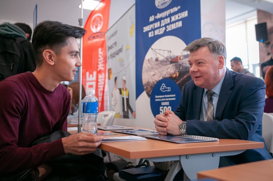 «Карьерный марафон» поддержало АО «Амуруголь» – одно из старейших и крупнейших добывающих предприятий Дальнего Востока. В рамках весеннего Дня карьеры руководство вуза и компании провели встречу по расширению сотрудничества в подготовке кадров. На осенней стендовой сессии представители «Амуругля» уже делятся впечатлениями о стажерах-иркутянах.
