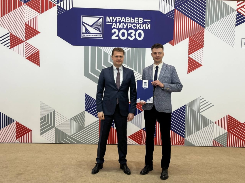 Курсант второго потока проекта подготовки управленческих кадров для Дальнего Востока «Муравьев-Амурский 2030» - заместитель директора программы развития Забайкальского государственного университета Даниил Жилин во Владивостоке 10 апреля после прохождения курса получил диплом выпускника от главы Минвостокразвития Алексея Чекункова.