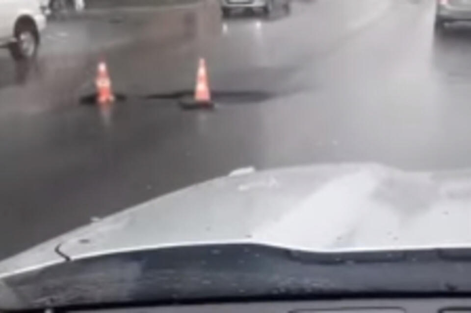 Асфальт провалился на Новобульварной в Чите