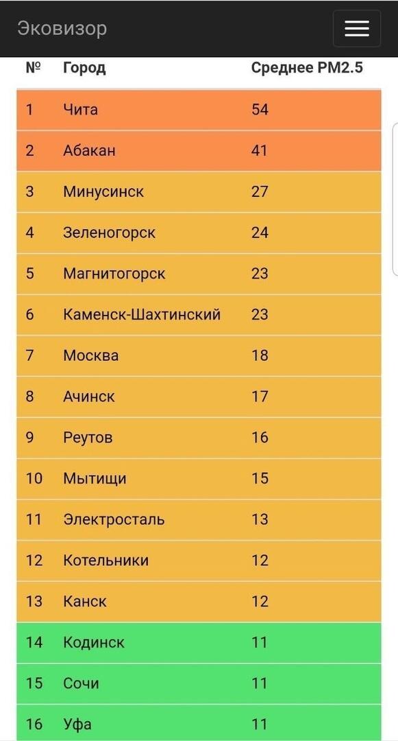 Рейтинг самых грязных городов России по качеству воздуха три недели возглавляет Чита, помимо неё в тройке лидеров оказались Абакан и Минусинск. Об этом сообщает Telegram-канал ShakhmatovGreen.