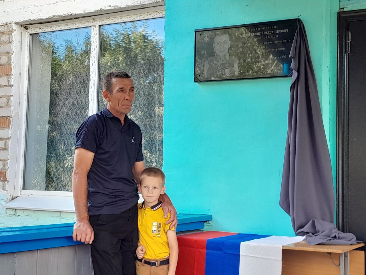 Доску памяти бойца СВО Дениса Чащина открыли в школе села Ивановка Нер-Заводского района