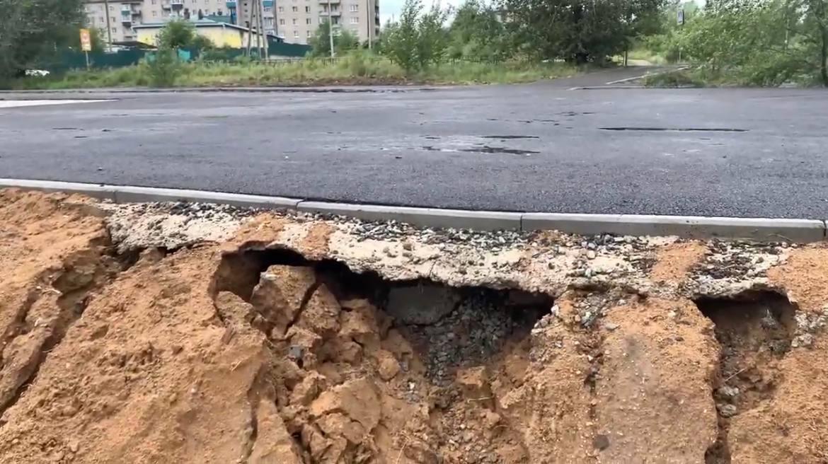 Асфальт стал проваливаться на недавно сделанной площадке напротив улицы Ваутина, 18 в Чите.