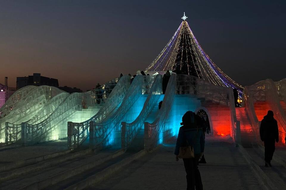 Ледовый городок на площади Ленина в Чите открыли 23 декабря: на площади разместили кафе в виде юрты, пункт проката коньков, каток, ледяные горки (некоторые спуски ограничены для детей младше 8 лет).