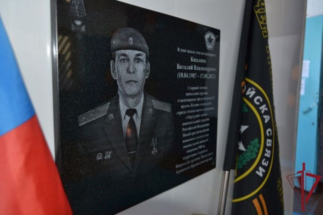Памятную доску военнослужащему 25-го ордена Жукова отдельного отряда специального назначения «Меркурий» войск национальной гвардии Российской Федерации прапорщику Виталию Касьянову открыли в школе поселка Ленинский Читинского района Забайкалья. Об этом 22 февраля сообщили в пресс-службе Управления Росгвардии по Забайкальскому краю.
