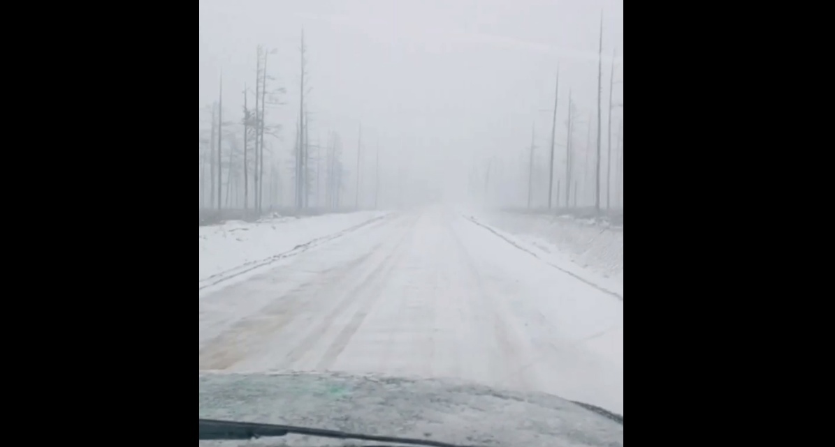 Видеороликом с заснеженной дорогой поделились рабочие прииска Наседкино.
