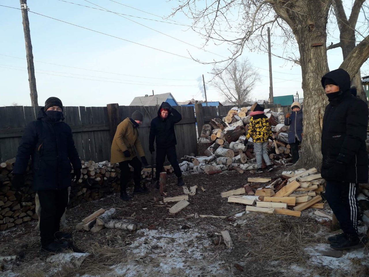 Ученики Могойтуйской школы №1 раскололи и сложили дрова семье погибшего в спецоперации Алексея Овчинкина.