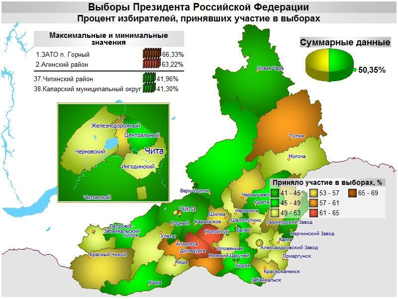 По данным на 21:00 16 марта в Забайкальском крае проголосовали 50,36% избирателей на выборах президента РФ. Об этом сообщается в Telegram-канале регионального Избиркома.