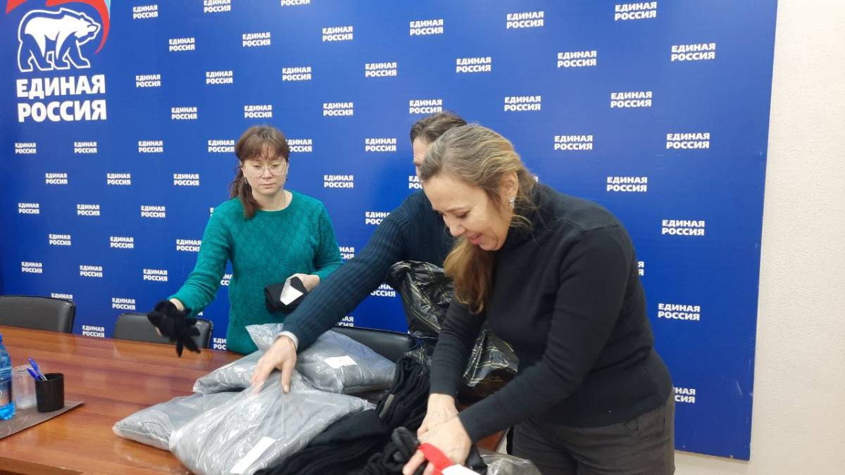 Семейная пара Ирина и Вячеслав — военные пенсионеры. Они принесли нательное белье, носки и перчатки. Все это предназначено для земляков-забайкальцев, которые сейчас находятся в зоне спецоперации.