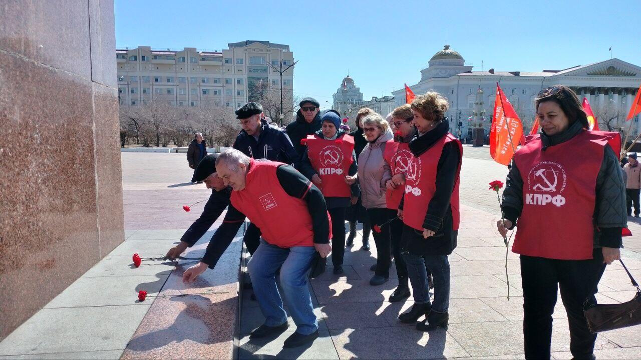 В столице Забайкалья коммунисты и активисты организаций «Дети войны», «Надежда России», «Русский Лад» и комсомольцы вместе со своими сторонниками возложили цветы к памятникам В.И. Ленину на центральной площади города и в Парке культуры и отдыха Окружного дома офицеров Российской Армии.