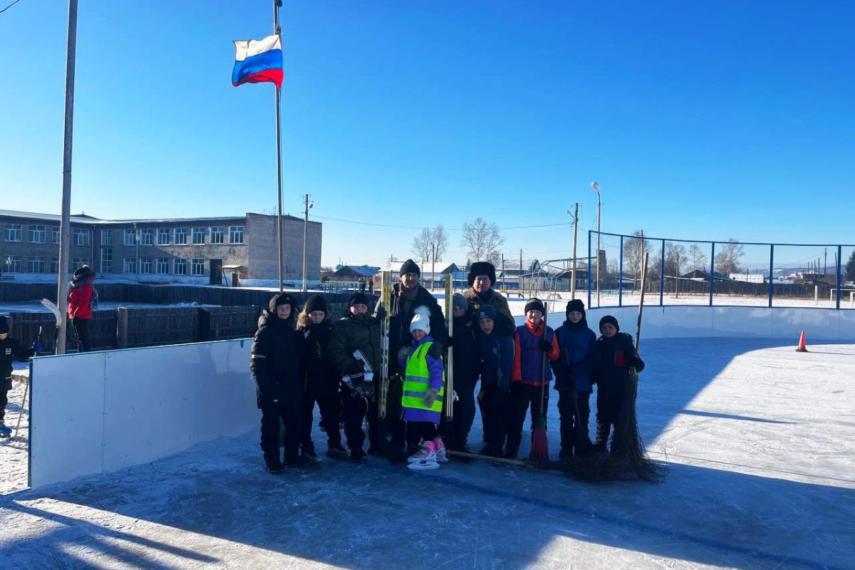 В селе Бада Хилокского района на территории школы была открыта современная хоккейная коробка