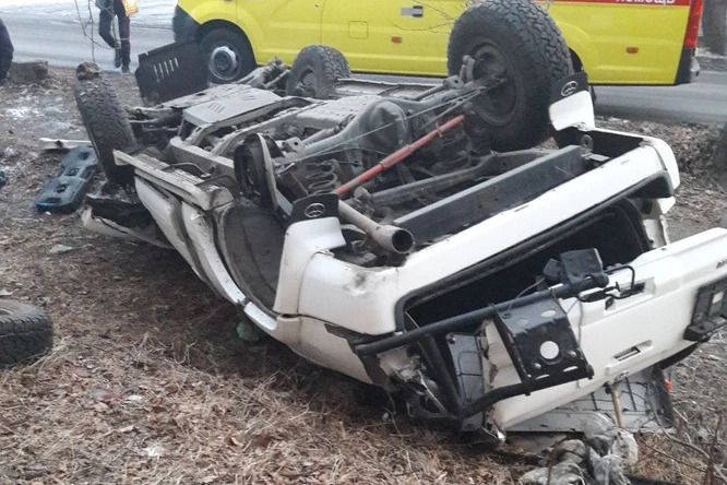 Автомобиль Toyota Surf перевернулся в районе улицы Бутина в Чите 25 февраля.