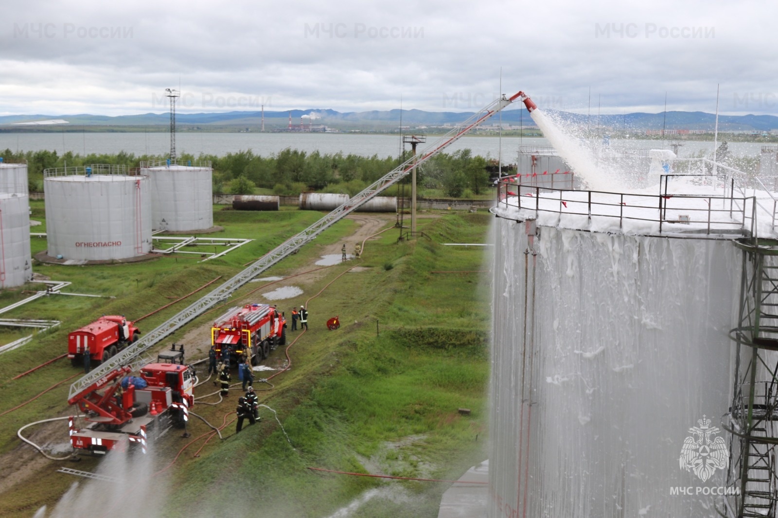 Читинские огнеборцы ликвидировали условный пожар емкости с топливом на нефтебазе