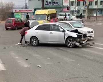 Днём 13 апреля Toyota Allion врезалась в маршрутку на улице Красной Звезды в микрорайоне Царский в Чите. Об этом сообщает портал Lenta75.ru со ссылкой на очевидца. Факт ДТП «Забайкальскому рабочему» подтвердили в региональном УГИБДД.
