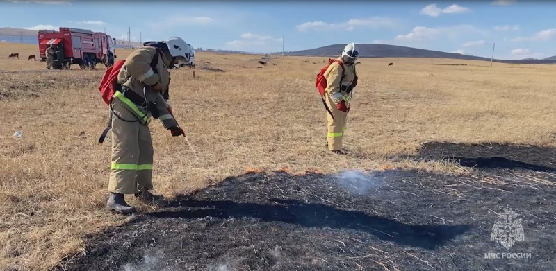 Пожарные потушили пал травы на площади 300 га в районе села Зыково