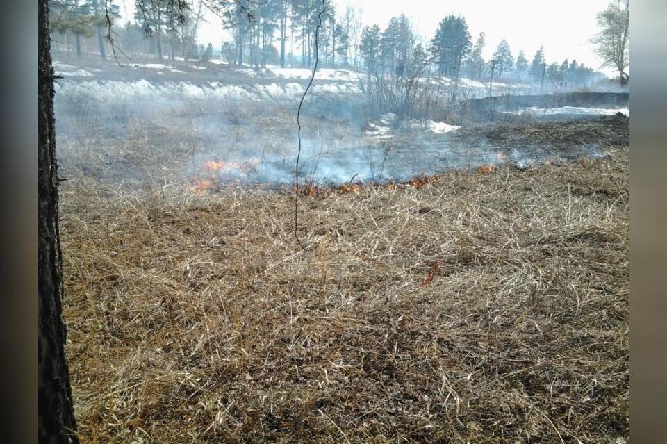 Сухая трава загорелась в селе Читинского района