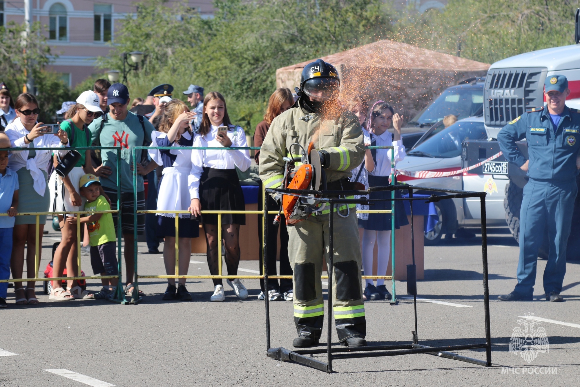 В День знаний сотрудники Главного управления МЧС России по Забайкальскому краю развернули на площади Ленина в Чите тематическую выставку техники и оборудования,