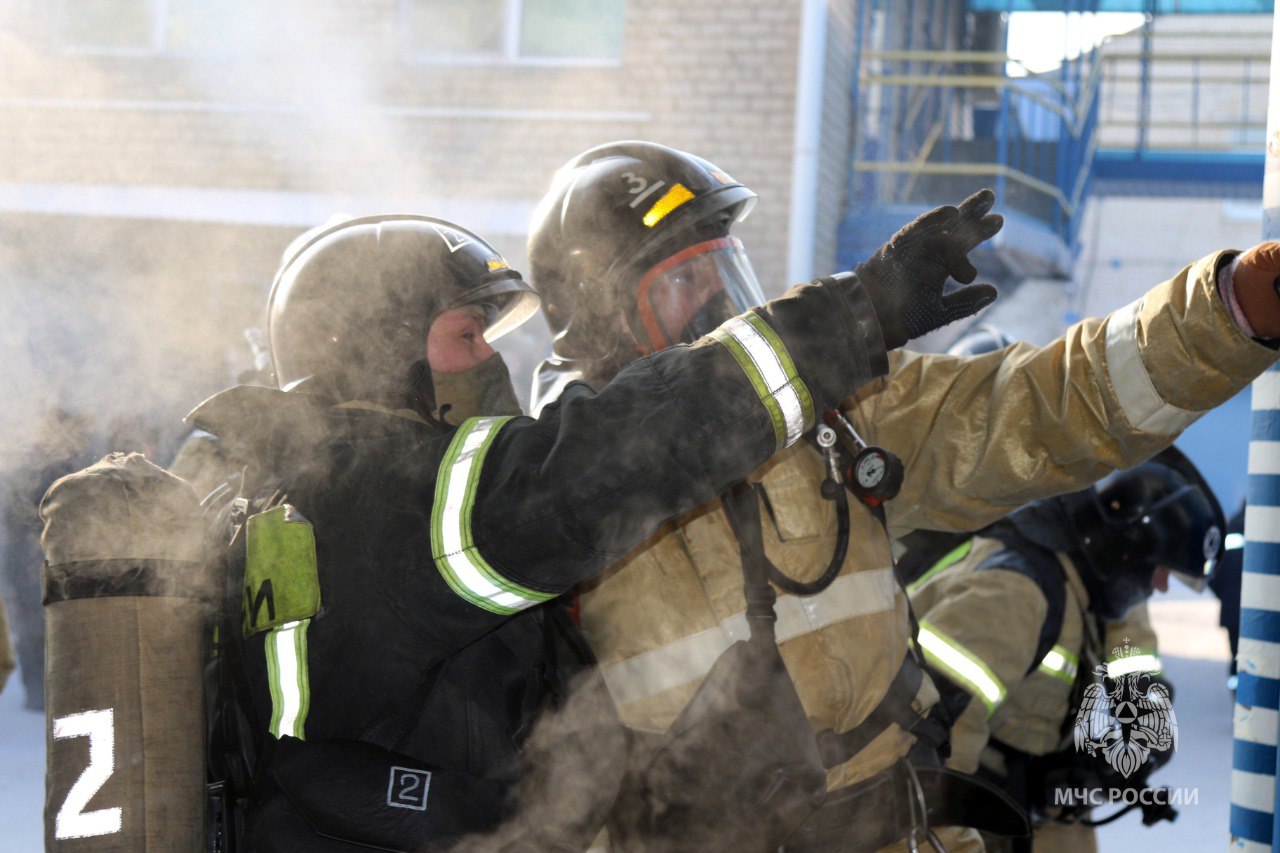 Огнеборцы из Читы в рамках учений ликвидировали условный пожар на складе мебели в торговом центре «АНТ».