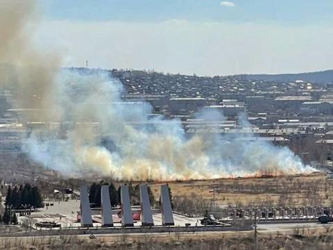 В субботу в Чите было сухо солнечно, ветрено и тревожно. Днем в столице Забайкалья тушили горящую траву в парке Победы и окрестностях, которая угрожала даже мемориалу боевой и трудовой славы забайкальцев.