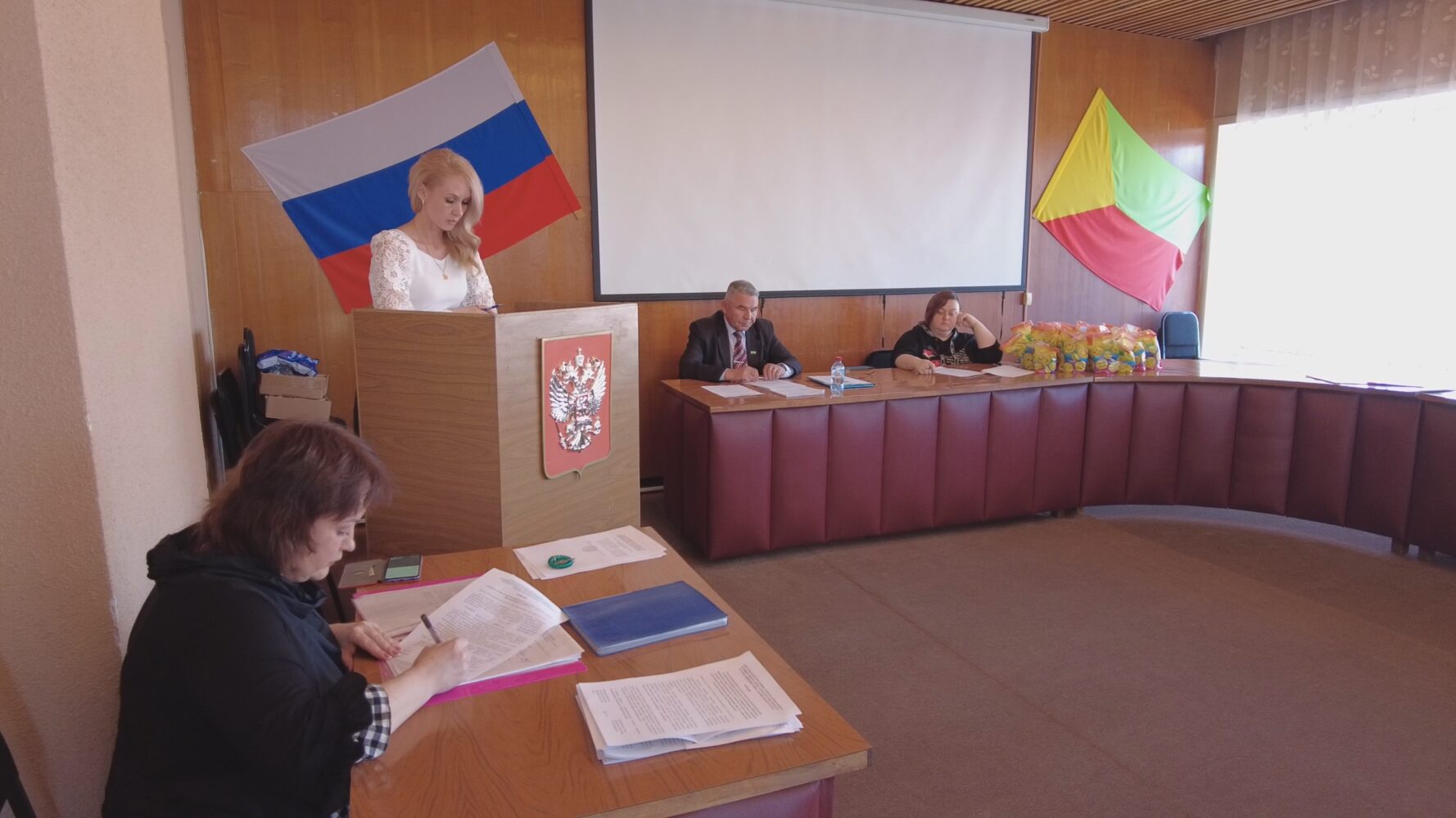 Началось заседание с приятного момента. За долголетний добросовестный труд и в связи с юбилеем Почетной грамотой была награждена Е.А. Хохлова, главный санитарный врач Краснокаменска. Принимая награду, Елена Анатольевна искренне ответила: