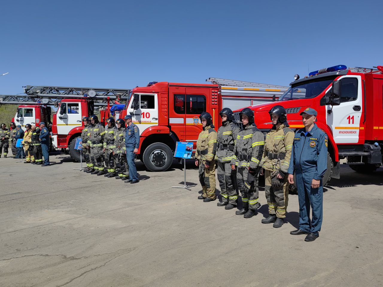 Ключи от четырех новых пожарных автомобилей спасателям Краснокаменска вручил начальник МЧС России по Забайкальскому краю Николай Басов. Техника уже заступила на боевое дежурство. Теперь на вооружении огнеборцев второго по численности населения города Забайкалья – две автолестницы и две автоцистерны. Подробности в репортаже.