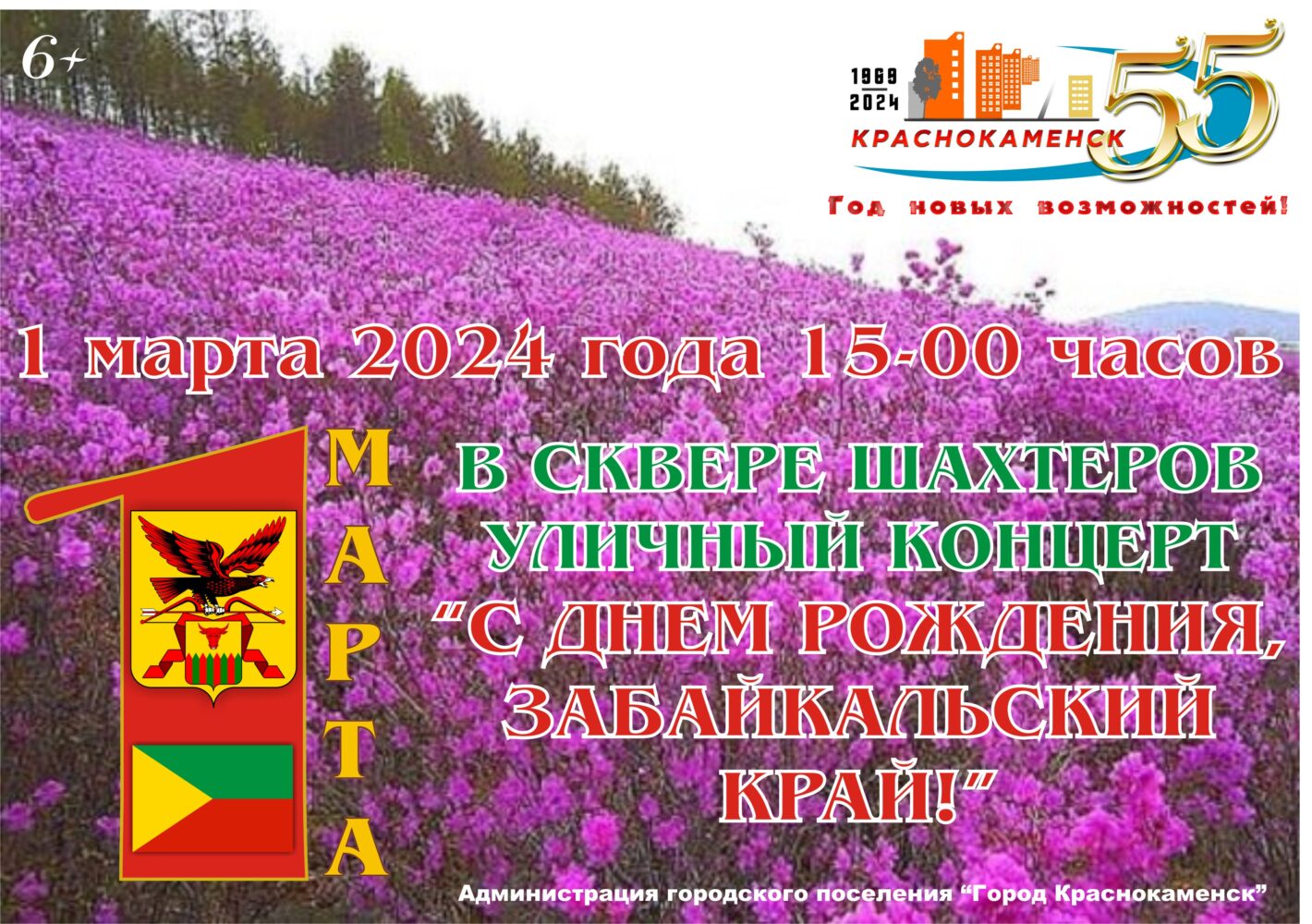 1 марта в сквере Шахтеров состоится праздничный концерт, посвященный Дню образования Забайкальского края