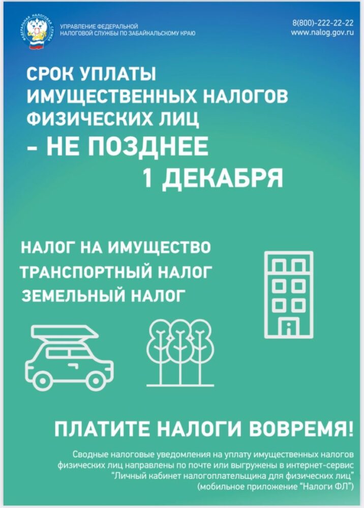 Срок уплаты имущественных налогов физических лиц – не позднее 1 декабря 2023 года