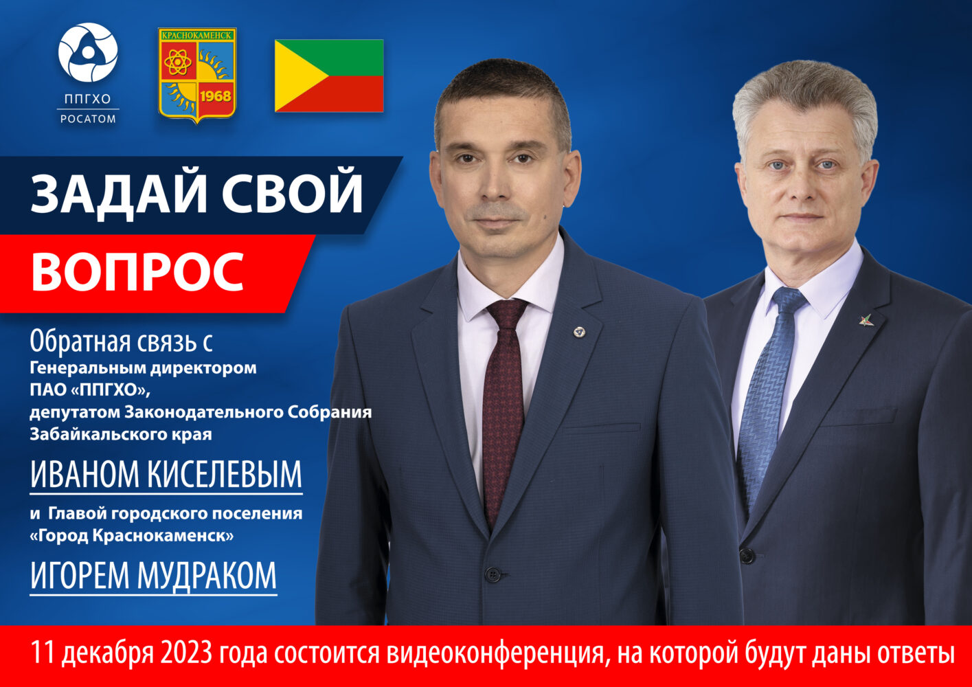Уважаемые краснокаменцы. Впервые состоится совместная пресс-конференция мэра города Игоря Мудрака и генерального директора ПАО «ППГХО» Ивана Киселева.