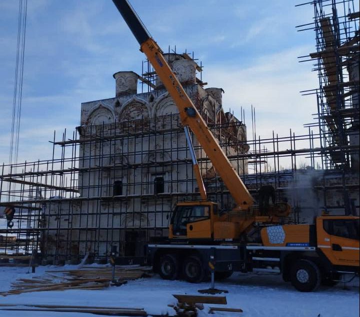 Аварийные купола демонтировали с 310-летнего храма в Калинино