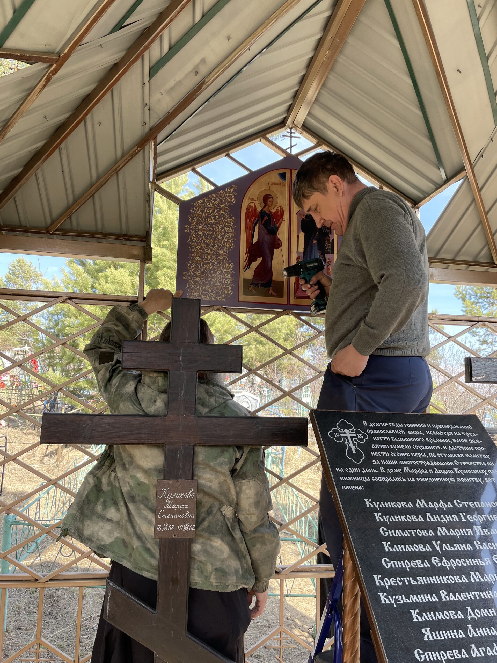 На кладбищенской часовне памяти шилкинских богомолок установлена икона Благовещение Пресвятой Богородицы
