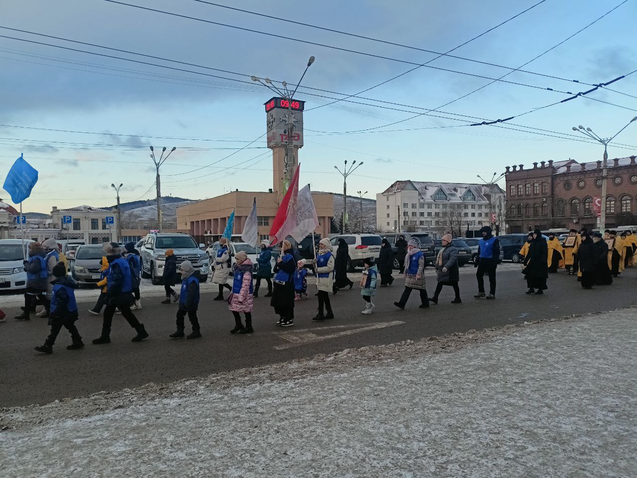 Позже верующие отправились в крестный ход от Кафедрального собора иконы Божией матери по улицам Бутина, Петровской, Ленинградской, Ленина и Амурской. Служители русской православной церкви вместе с прихожанами остановились возле памятника святому благоверному.