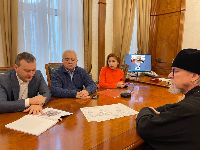 Фото пресс-службы фонда развития Забайкальского краяПо ее словам, в Москве состоялось совещание, на котором с командой Союза реставраторов России обсуждены дальнейшие этапы проекта восстановления объекта культурного наследия. Во встрече приняли участие глава Забайкальской митрополии, митрополит Читинский и Петровск-Забайкальский Димитрий, президент Союза реставраторов России Вячеслав Фатин, руководитель государственной службы по охране объектов культурного наследия Забайкальского края Родин Буянов.