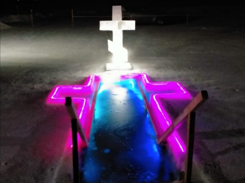 На площадке обустроены иордань для купания, прорубь для забора воды, а также разбиты отапливаемые палатки, в которых желающие окунуться могли переодеться и выпить горячего чая.