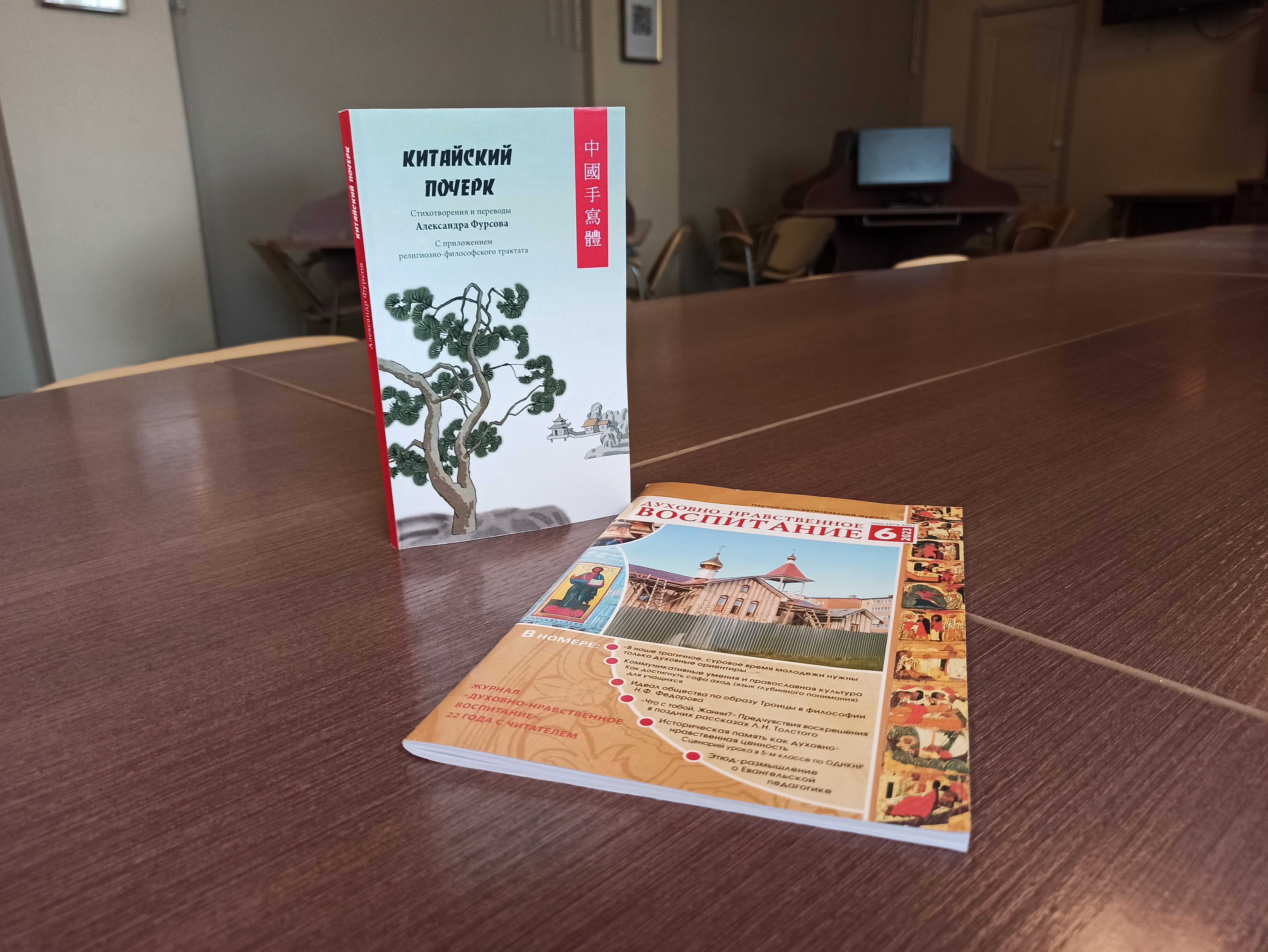Ещё одним подарком стала книга Александра Фурсова «Китайский почерк. Стихотворения и переводы с приложением религиозно-философского трактата» . Новую книгу составили стихотворения и переводы стихов древних китайских поэтов, а также отрывки из религиозно-философского трактата «Метафизика иероглифа» (формула Великого Инь), созданные автором во время его работы в Китае.