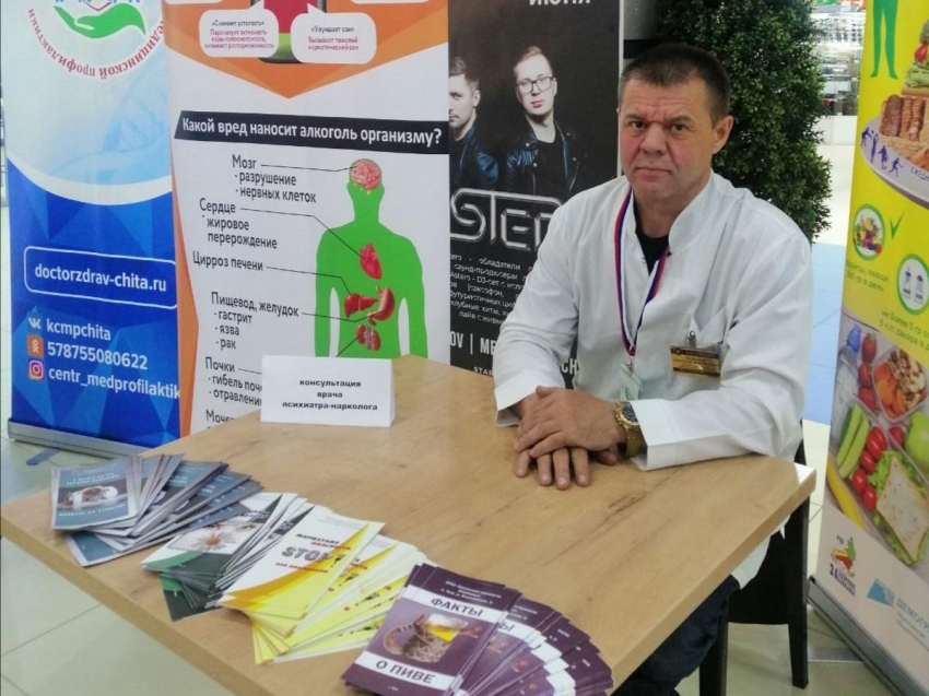 Фото пресс-службы министерства здравоохранения Забайкальского края«Спиртные и алкогольные напитки патологически воздействуют на организм в любое время года. Возникает высокий риск повышения артериального давления, инфаркта, инсульта, происходят нарушения эндокринной и гормональной системы, гибнут нейроны центральной нервной системы. Большое количество пива и аналогичных продуктов вызывают нагрузку на почки, что проводит к хронической почечной недостаточности», - рассказал психиатр-нарколог Александр Глушенков.