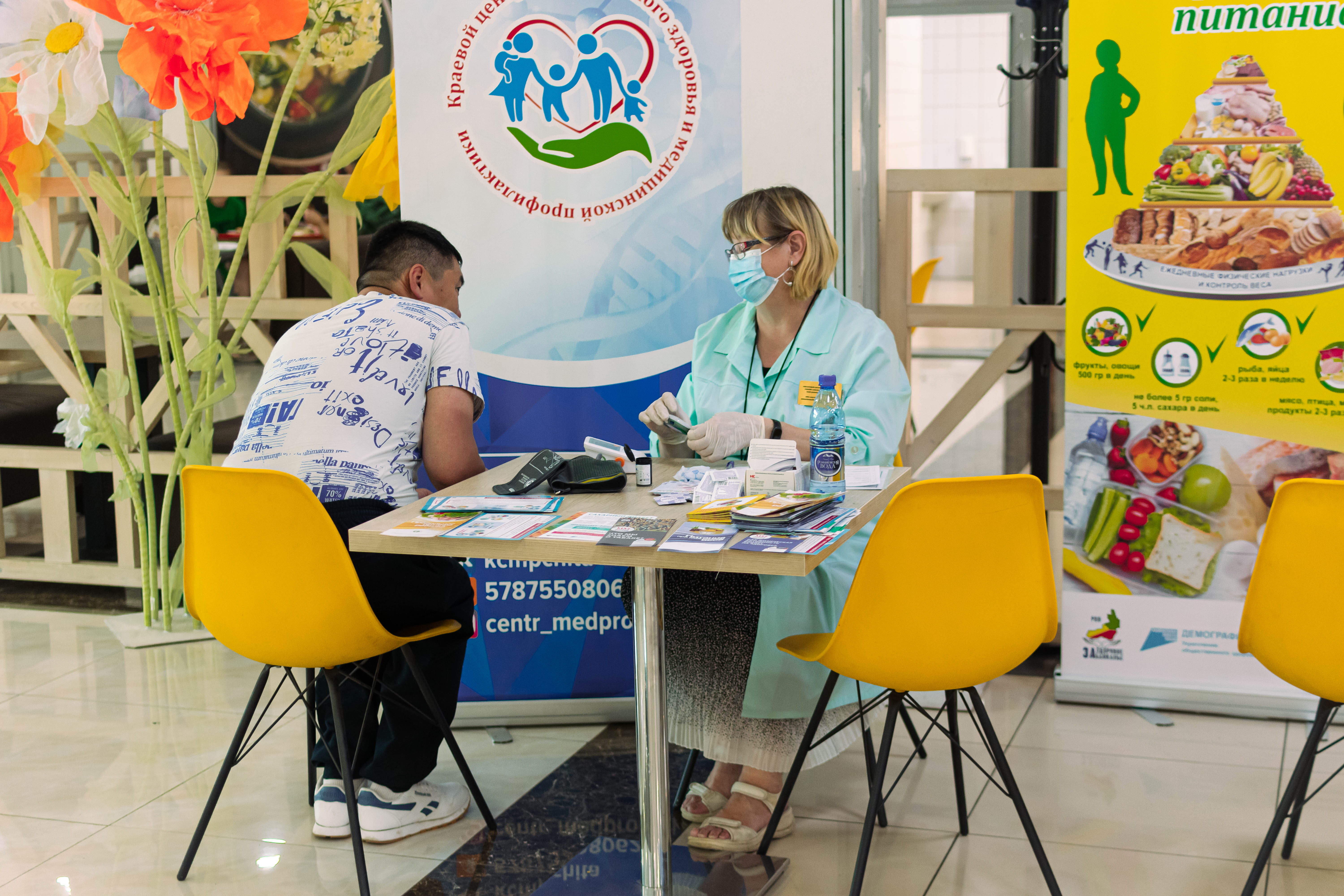 Информационно-диагностическая акция, посвященная укреплению и сохранению иммунитета, а также Дню семьи, любви и верности, прошла 7 июля в ТЦ «Столица». Порядка 300 забайкальцев получили консультации врачей-специалистов, 64 из них прошли обследование и узнали свой уровень сахара в крови и сатурацию кислорода, измерили артериальное давление и уточнили свой ВИЧ статус.
